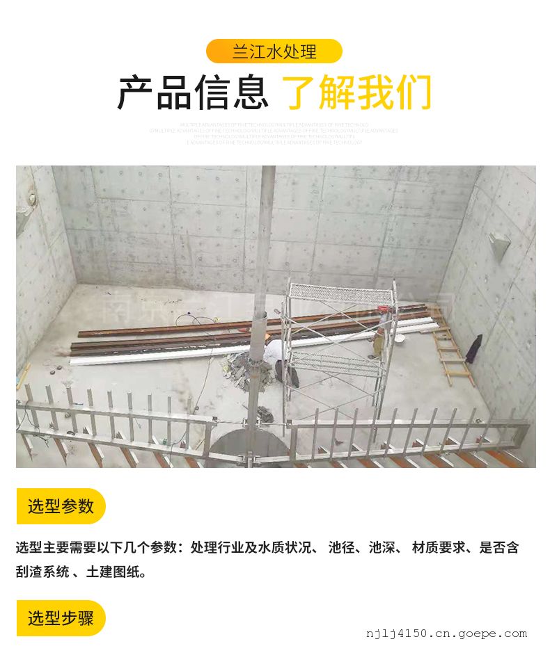 2、刮泥机耙齿底边距池底保持50mm允差±100mm。