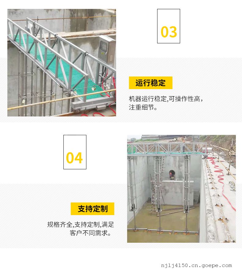 6、吊架:与行车平台相连,用来支承悬挂吸泥管路及刮泥板等。